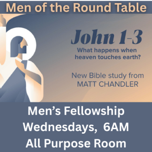 Join us Wednesday mornings at 6:00am in the All Purpose Room as we dive into John 1-3, What Happens When Heaven Touches Earth, a new Bible study from Matt Chandler.